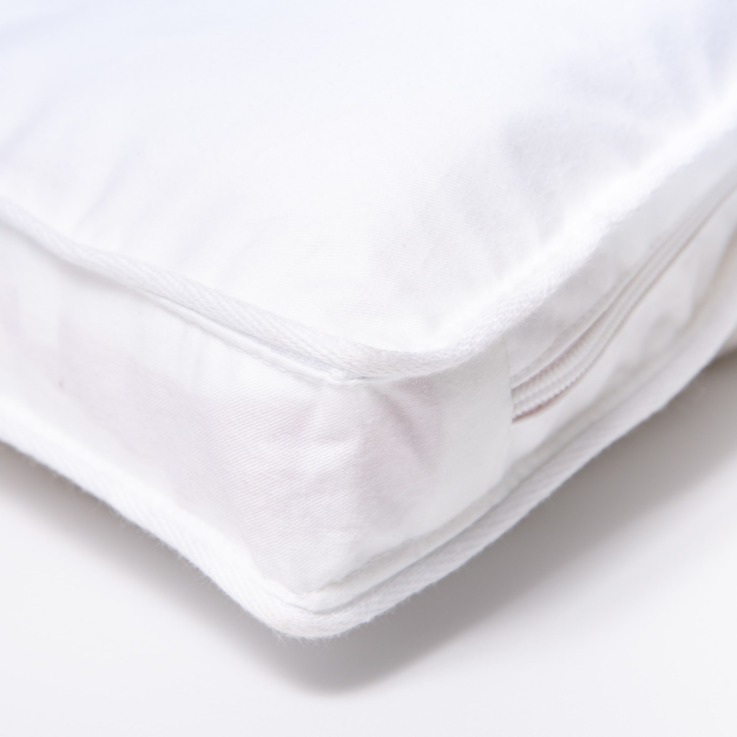 Il puro cotone, impiegato per la produzione della federa, accuratamente scelto, è realizzata con la tessitura a trama stretta. Questa tecnica conferisce robustezza al tessuto impedendo alla polvere di entrare o uscire dall’imbottitura. La federa nella linea premium ha una banda laterale rifinita con 2 cordoncini. Quest’ ultima accortezza consente di avere una distribuzione dell’ imbottitura più uniforme su tutta la superficie del cuscino. Le federe dei cuscini premium hanno una cerniera sul lato lungo per consentire la sostituzione del’ imbottitura.