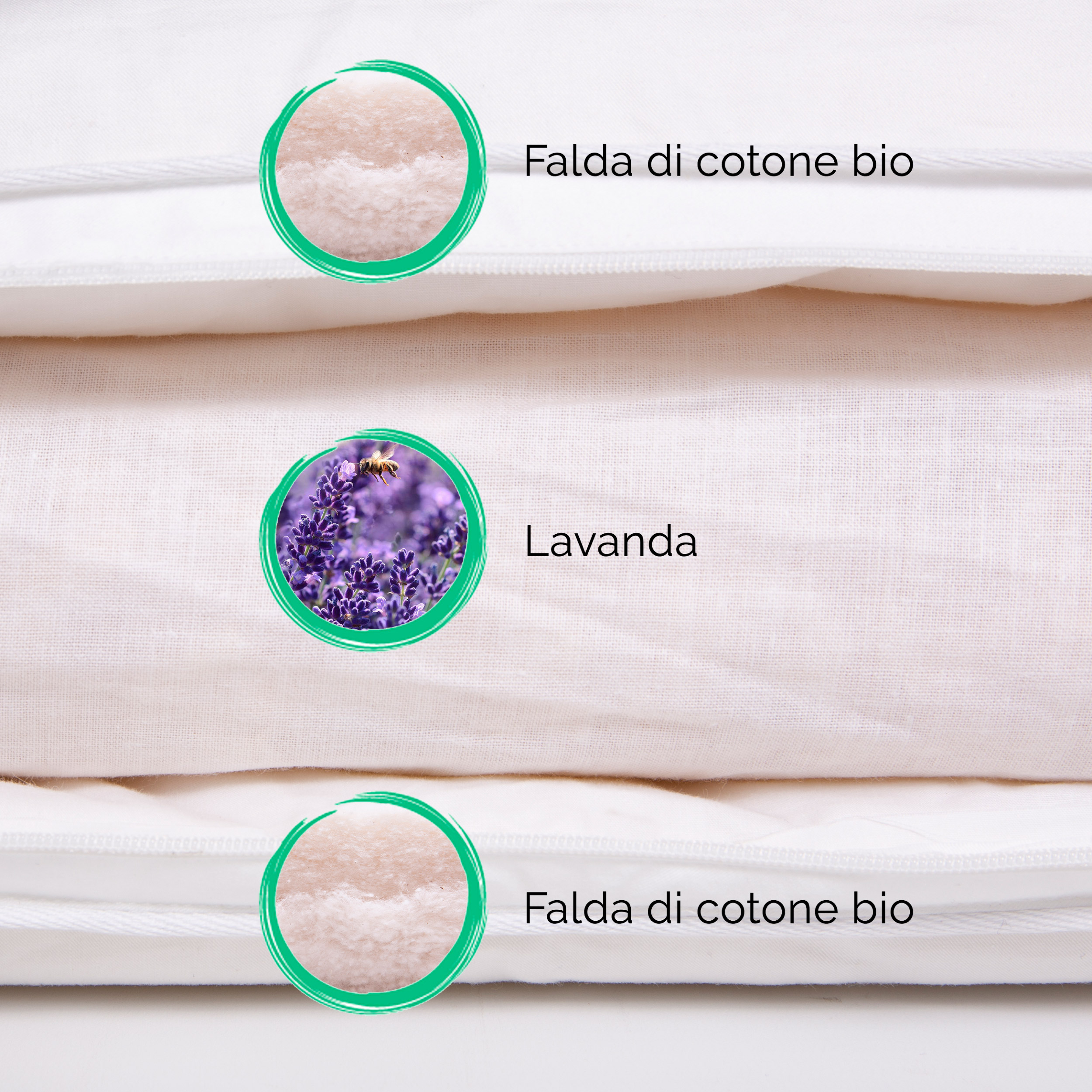 Il guanciale Cotone Biologico con Lavanda è pensato appositamente per chi preferisce materiali d’origine vegetale. Estremamente fresco, tonifica l’organismo e, con il suo profumo dei campi di lavanda, assicura un dolce riposo.