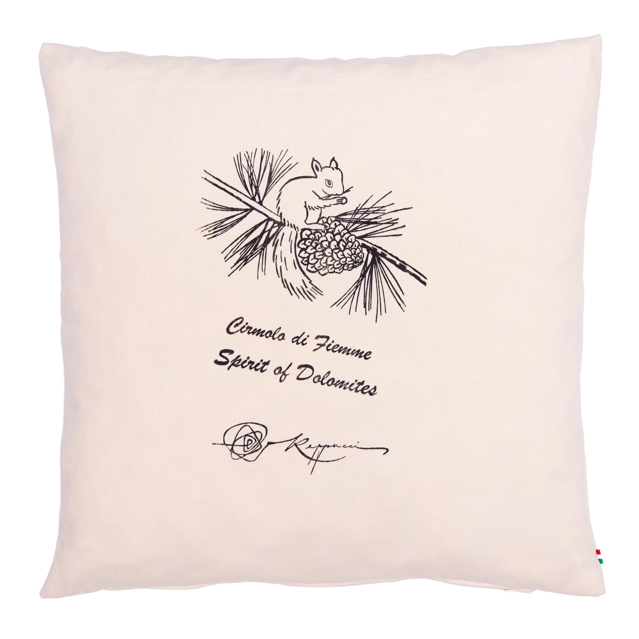 Il cuscino presenta un’imbottitura esclusivamente in trucioli di cirmolo, racchiusa all’interno di un apposito sacchetto. L’imbottitura può essere estratta tramite una comoda cerniera laterale.