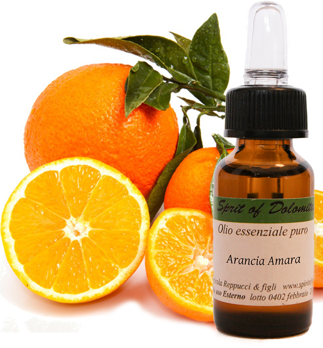 Olio essenziale puro al 100% d’arancia amara (10ml). Calmante e ottimo per la digestione.