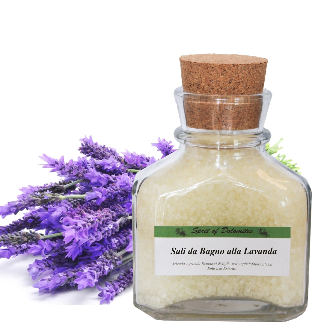 Sali da bagno aromatizzati con olio essenziale di lavanda. Peso 300g.