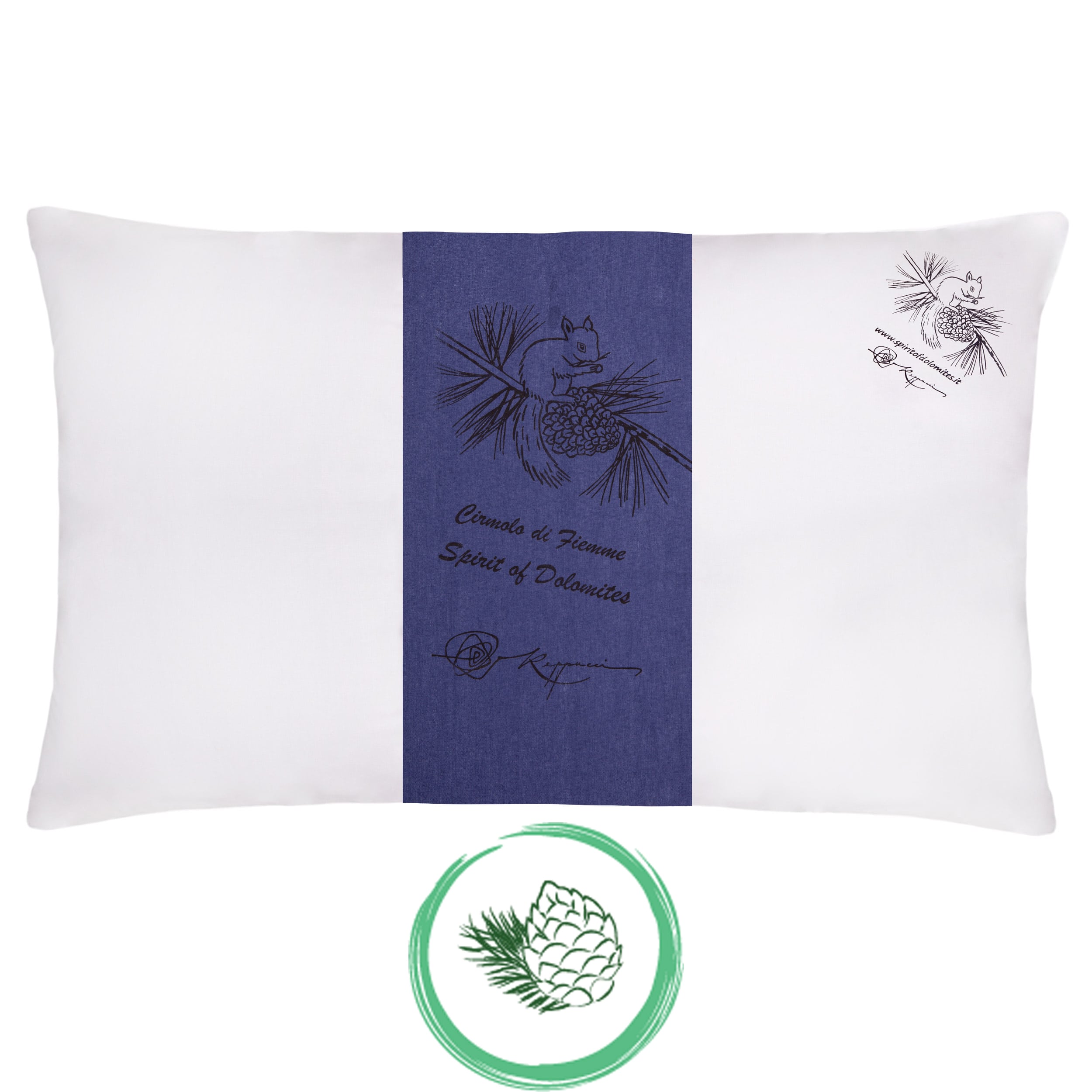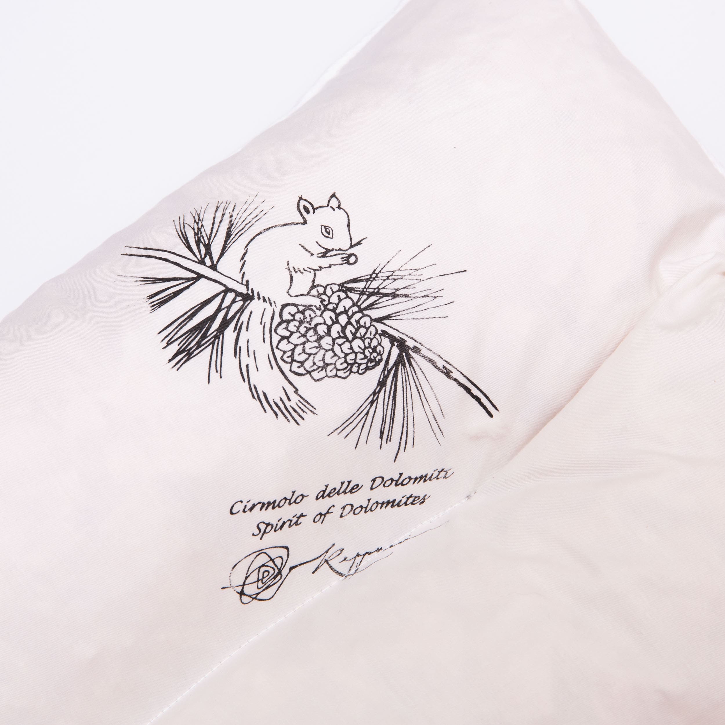 La preparazione dei cuscini è fatta a mano, le piante di cirmolo, meticolosamente selezionate dalla nostra Azienda con la supervisione dei guardiaboschi, provenienti dalle foreste incontaminate di alta montagna della Val di Fiemme (Dolomiti), vengono tagliato in assi, stagionate in modo naturale per 8/12 mesi per togliere l’ umidità senza alterarne le caratteristiche e ridotto in trucioli con un particolare processo che ne dona elasticità e morbidezza. Il cirmolo è una pianta protetta, prospera sopra i 2.000 m., cresce molto lentamente per cui il numero di alberi che si possono abbattere annualmente è molto limitato.