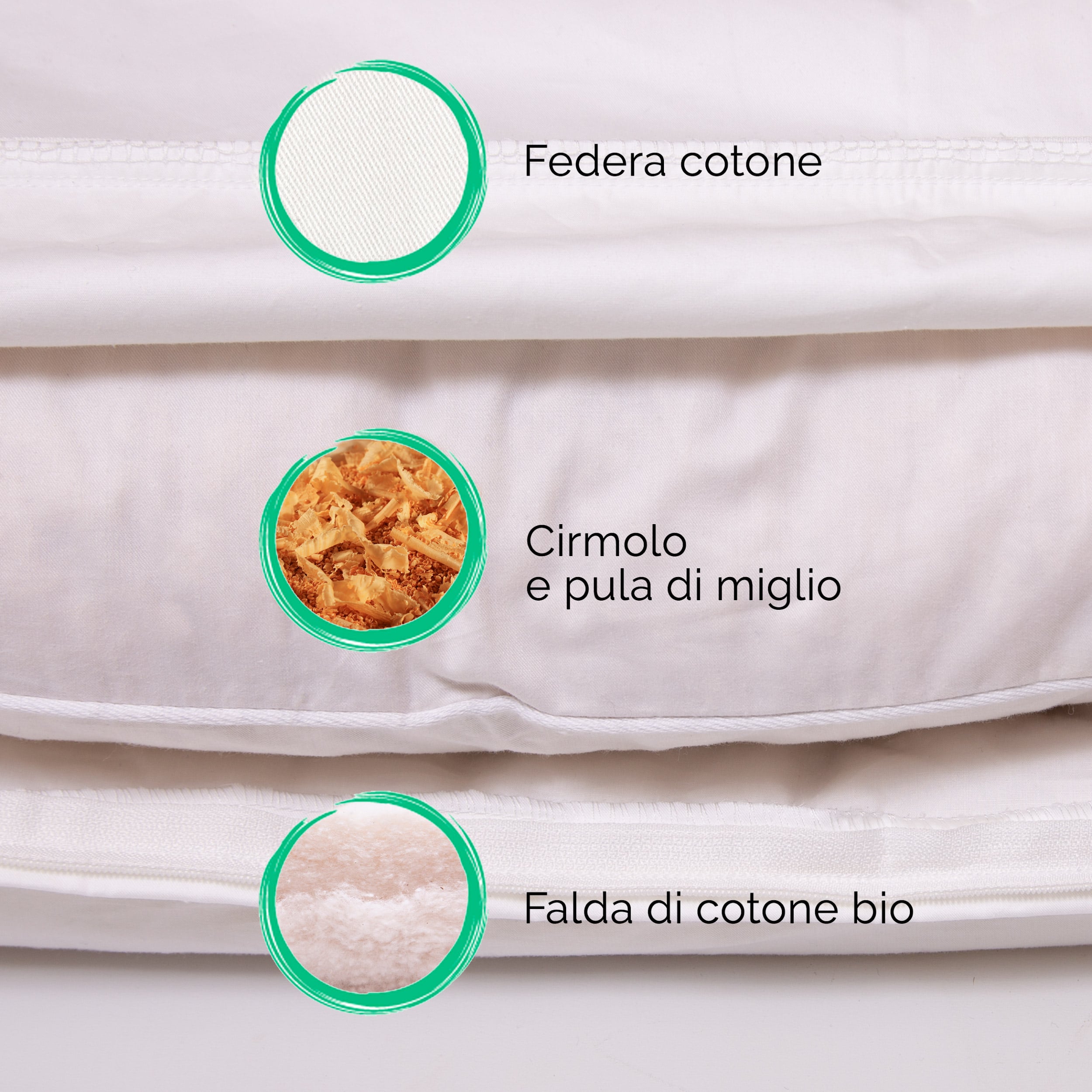 Il guanciale ha un ottima traspirazione e non trattiene il sudore in quanto è fatto di materiali naturali che consentono il riciclo dell'aria.
